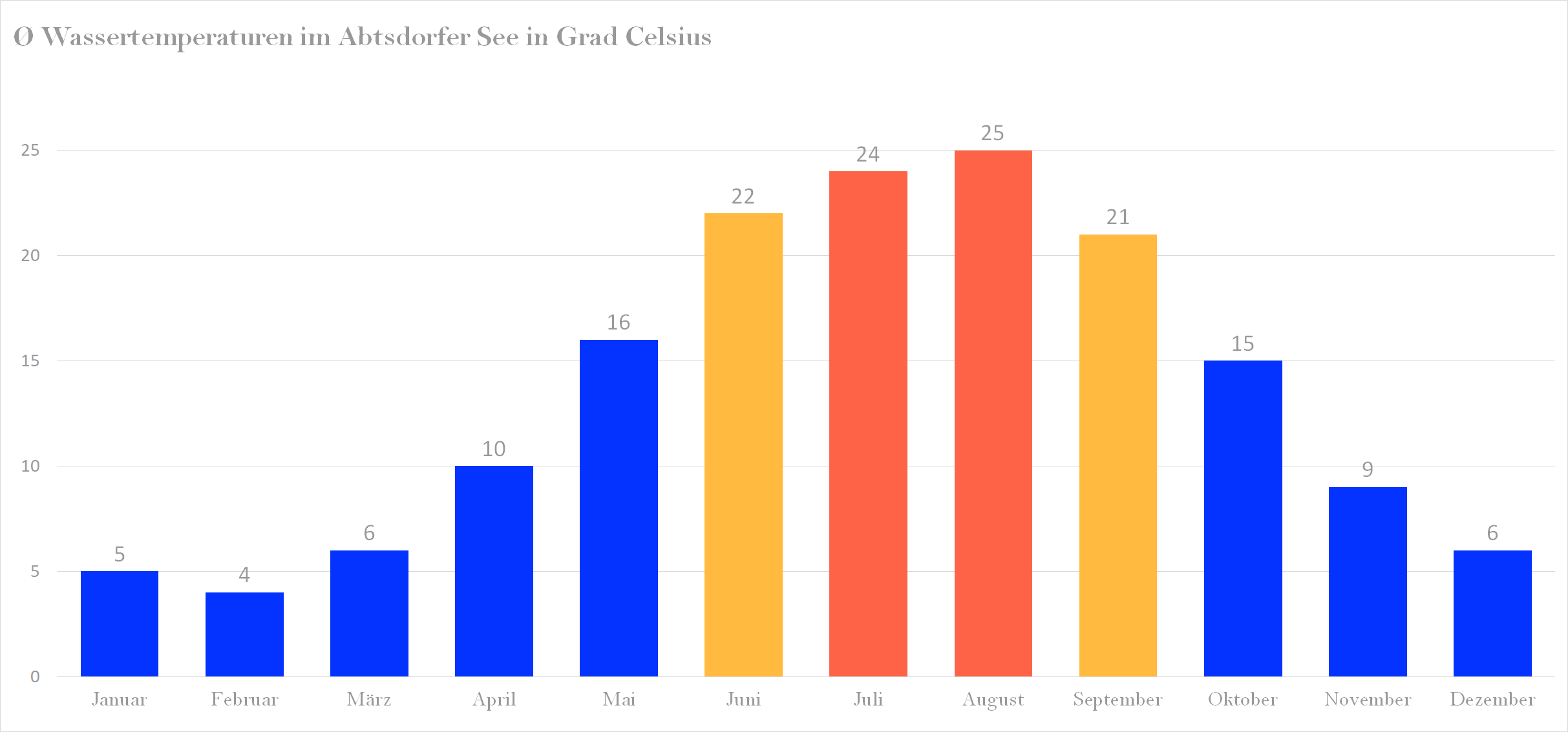 Durchschnittliche Wassertemperatur im Abtsdorfer See im August: 25 °C