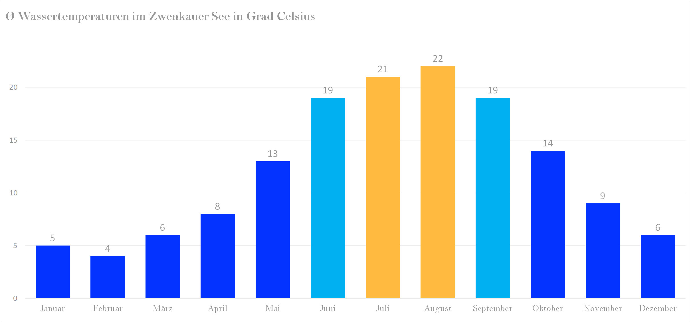 Durchschnittliche Wassertemperaturen im Zwenkauer See in Sachsen