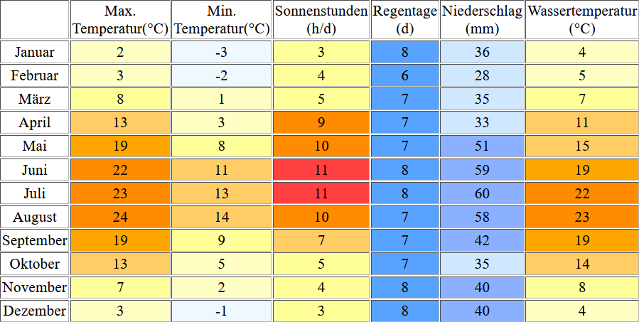 Klimatabelle für den Werbellinsee